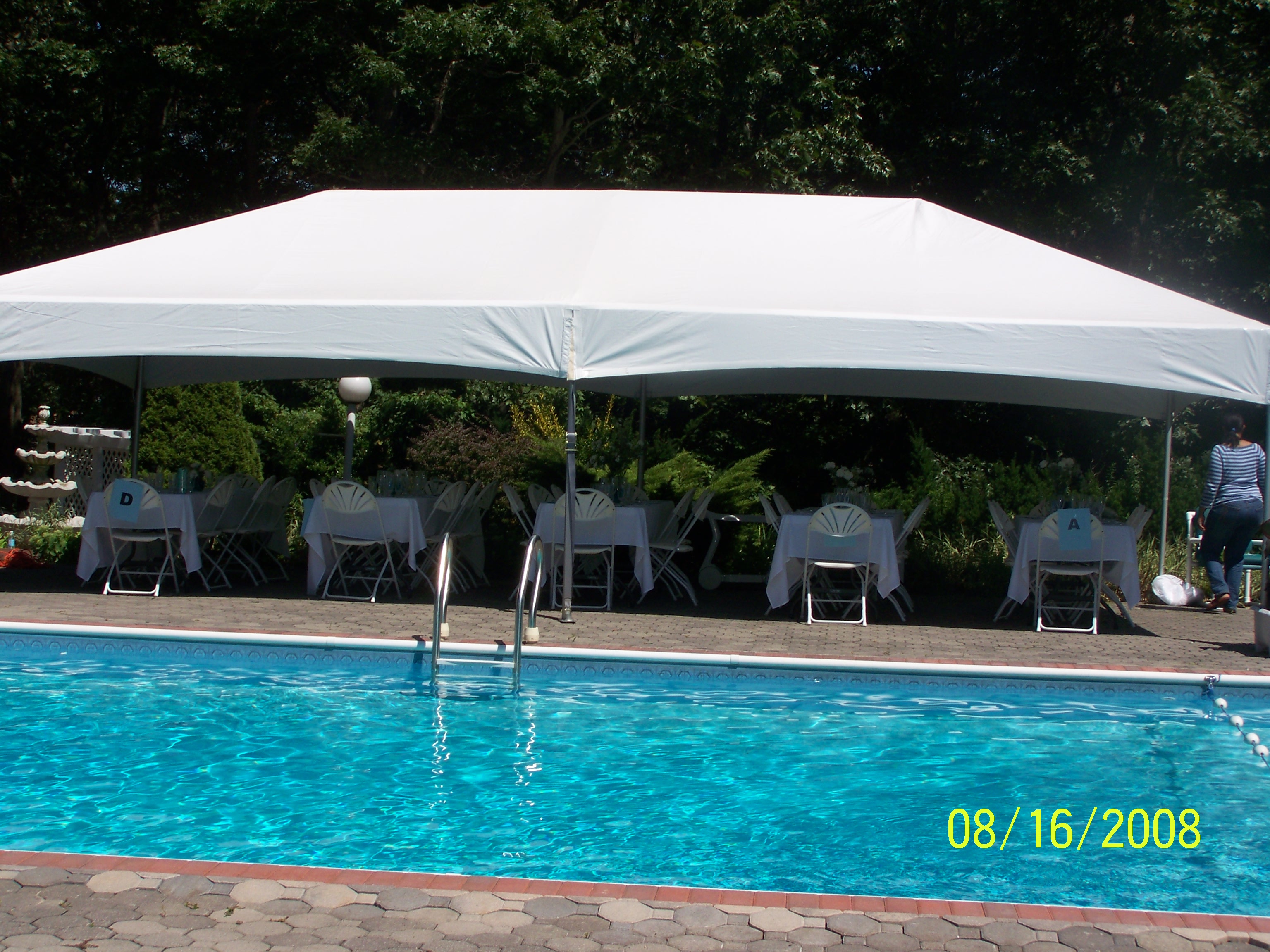 A&A provides you with the highest quality tents for your occasion. Don't leave your guests out in the rain, be prepared. Our team will set up and dismantle your tent in a professional manner. A&A's tents come in a variety of sizes to accomodate a small gathering to large events as well. Call us now to reserve your party tent today! Additional sizes are listed below. Click on an image below to see it larger. |